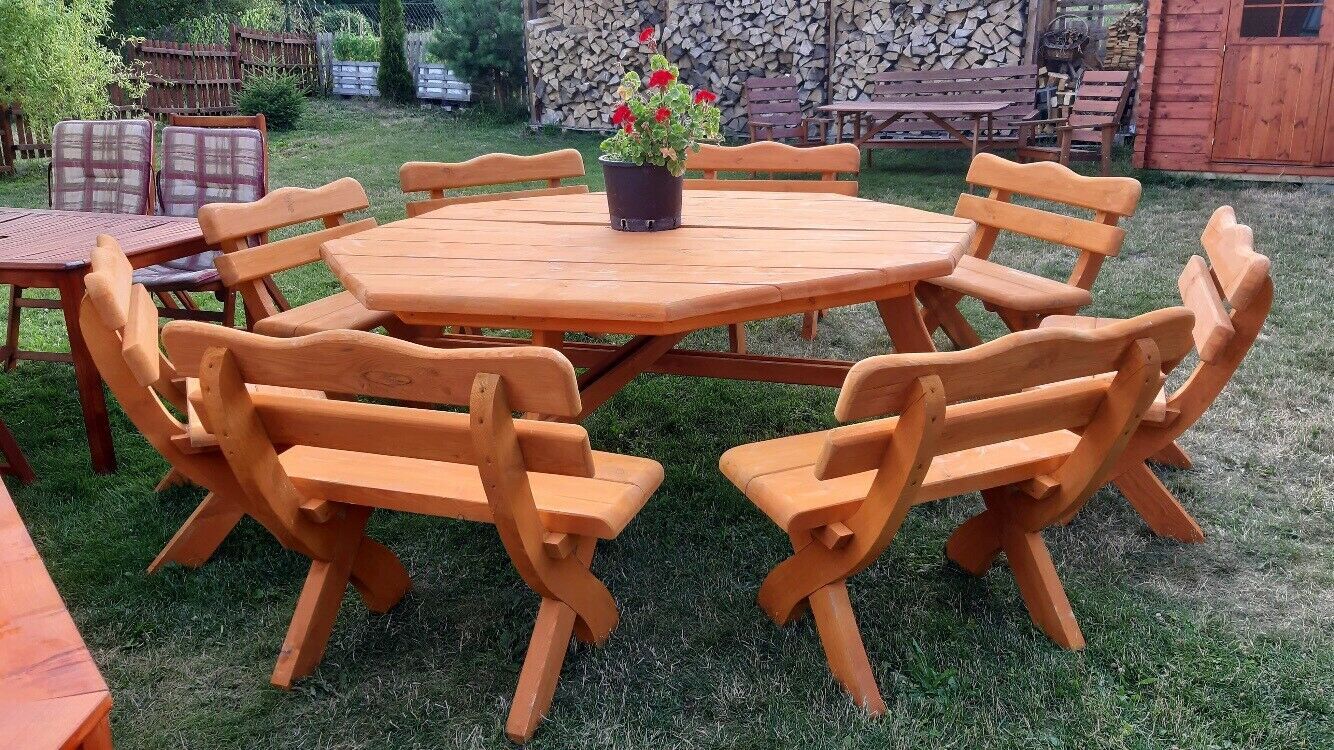 Eine Sitzgruppe besteht meist aus einem Tisch und mehreren Stühlen oder Bänken. Der Tisch kann rechteckig oder 8-eckig geformt sein, damit möglichst viele Personen an der Sitzgruppe Platz haben. Die Gartenmöbel Sets sind modern gestaltet oder mit Rundhölzern eher rustikal gehalten. - Picknicktisch: